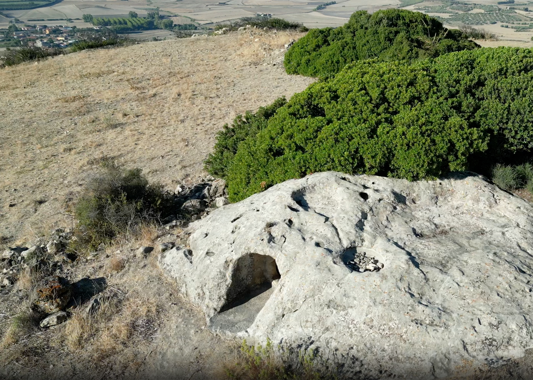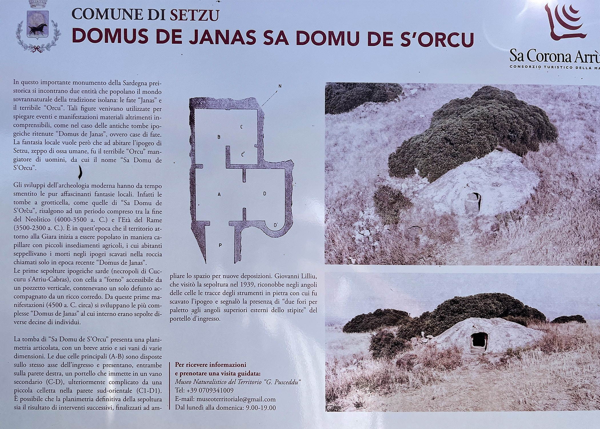 The Domus de Janas Sa Domu e S’Orcu is a small grotto discovered between 1939 and 1940 by the archaeologist Giovanni Lilliu, cropping out of a luscious expanse of green that, if that’s even possible, adds even greater relevance to the site.
