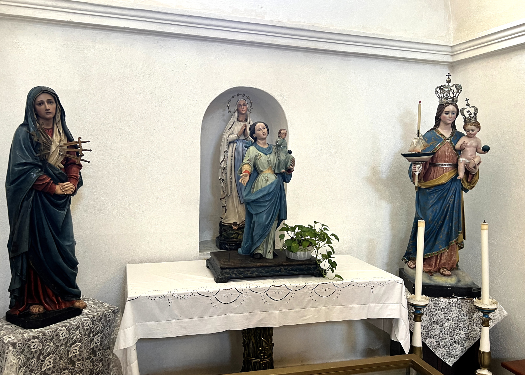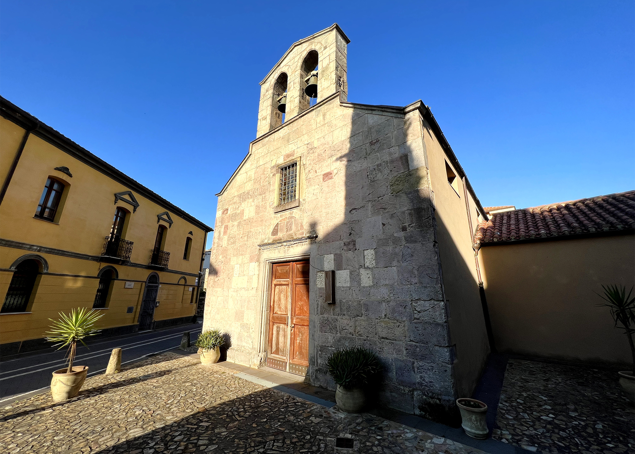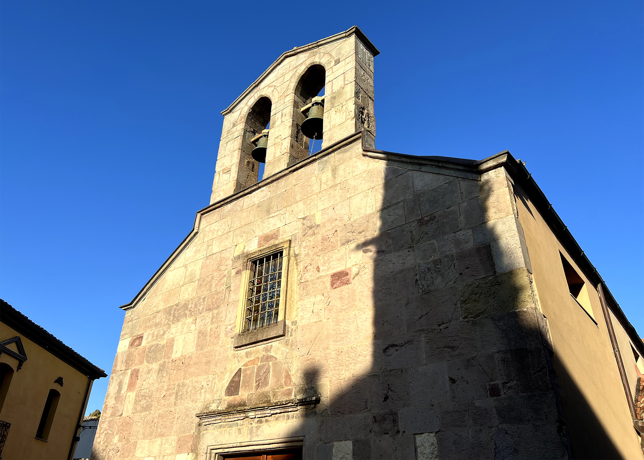 When you look at it from the outside, the church looks surmounted by a bell gable, a recurring structural feature in Sardinian churches, and covered in square ashlars that add an aura of elegant gravitas to the whole thing.