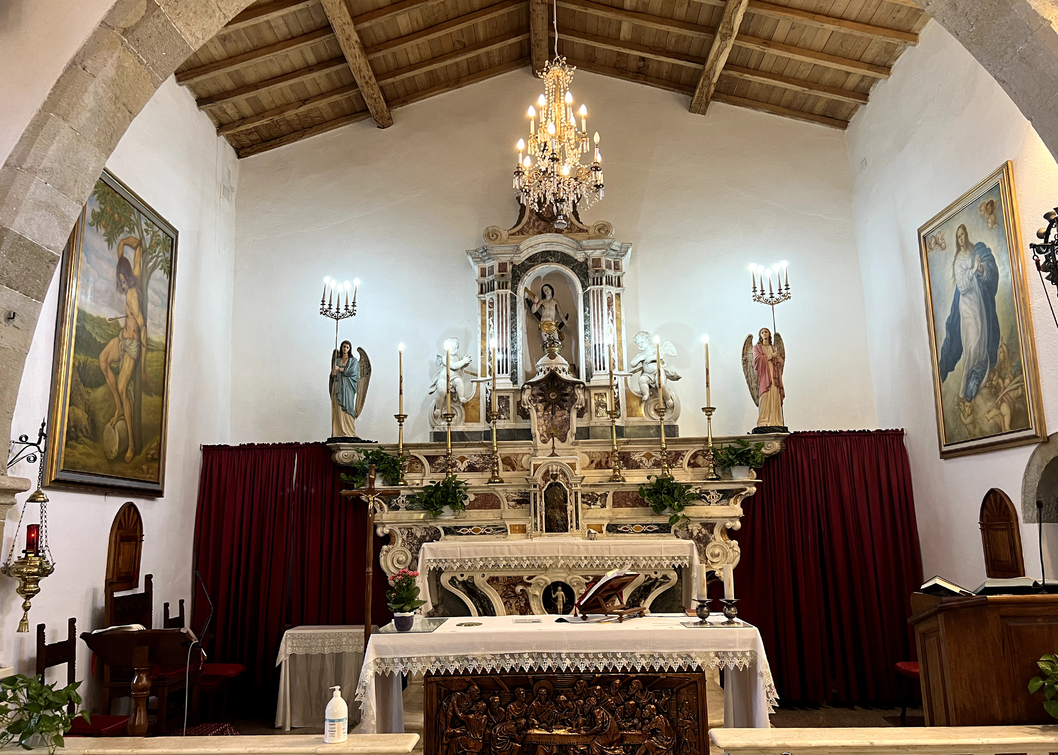 The church is dedicated to St Sebastian, a Roman soldier and a martyr killed for having defended his own Christian faith.