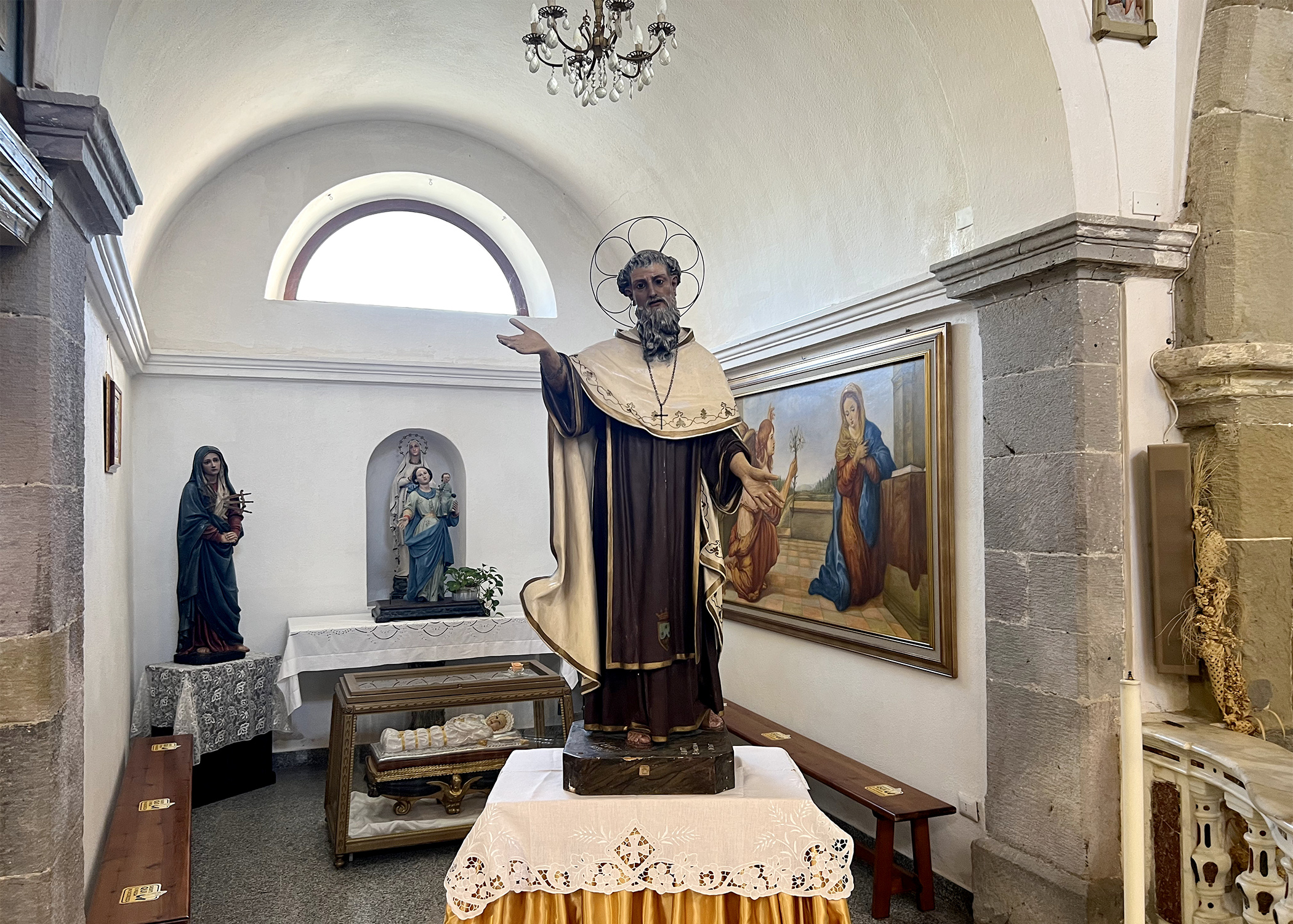 Most remarkable is the wooden pulpit in the aisle, carved by the Cagliari-born artist Battista Medinas in 1788.