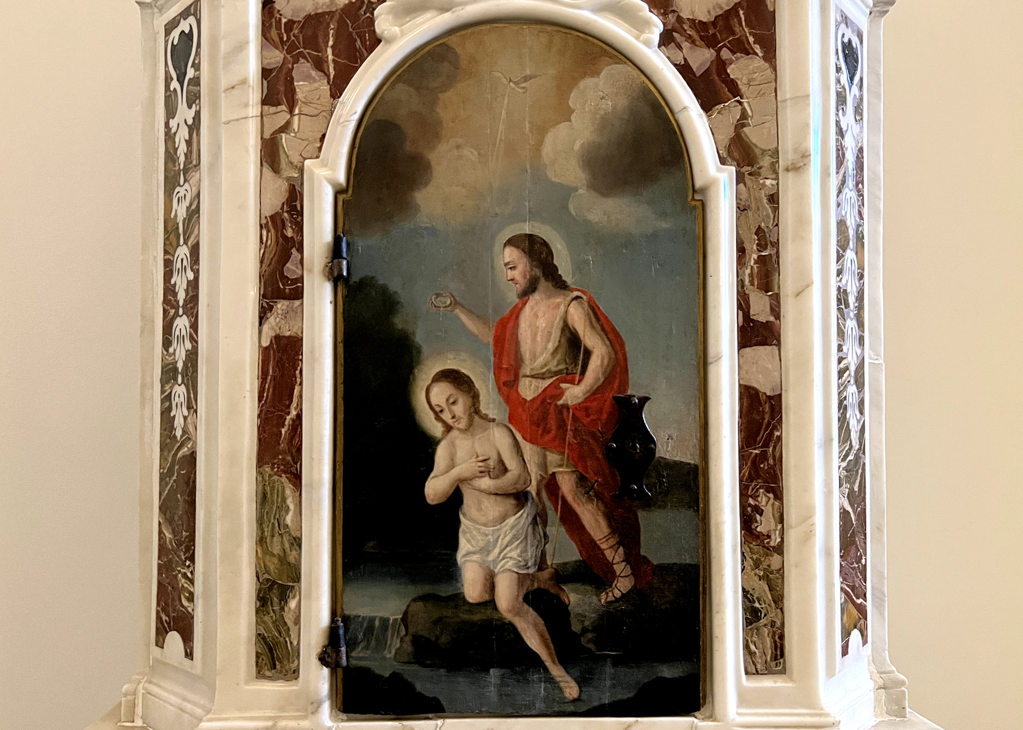 As you walk on in your tour, you will bump into other fine examples of religious art, such as a painting of the Virgin Mary, the Saints and the Souls in Purgatory, attributed to Giacomo Altomonte. Most noteworthy is the oldest piece in the church: a bronze bell with the inscription “S.Laurentii ora pro nobis A.D. MCCXX” on it and a portrait of the Saint and the Cross.